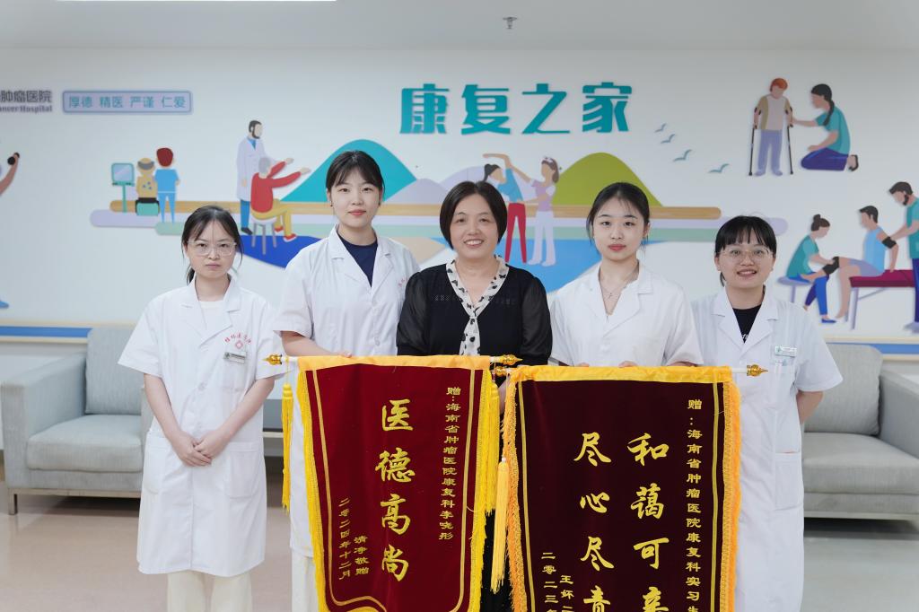 17日下午,曾小云一行还到海南省肿瘤医院进行了实习生教学检查、访企拓岗、洽谈合作事宜,并与医院党委书记、执行院长石耀辉等进行座谈,双方就学科建设、师资力量培养、学生培养等方面进行深入交流。期间,曾小云探望在医院实习的康复治疗专业学生。因扎实的专业素质和人文关怀能力表现突出,学生连续2年获得患者赠送感谢锦旗,并在2025年海南省康复治疗实习生知识竞赛中组队获得一等奖、二等奖。曾小云与学生亲切交谈,了解学生生活情况,勉励他们学好专业知识,为健康中国贡献力量。