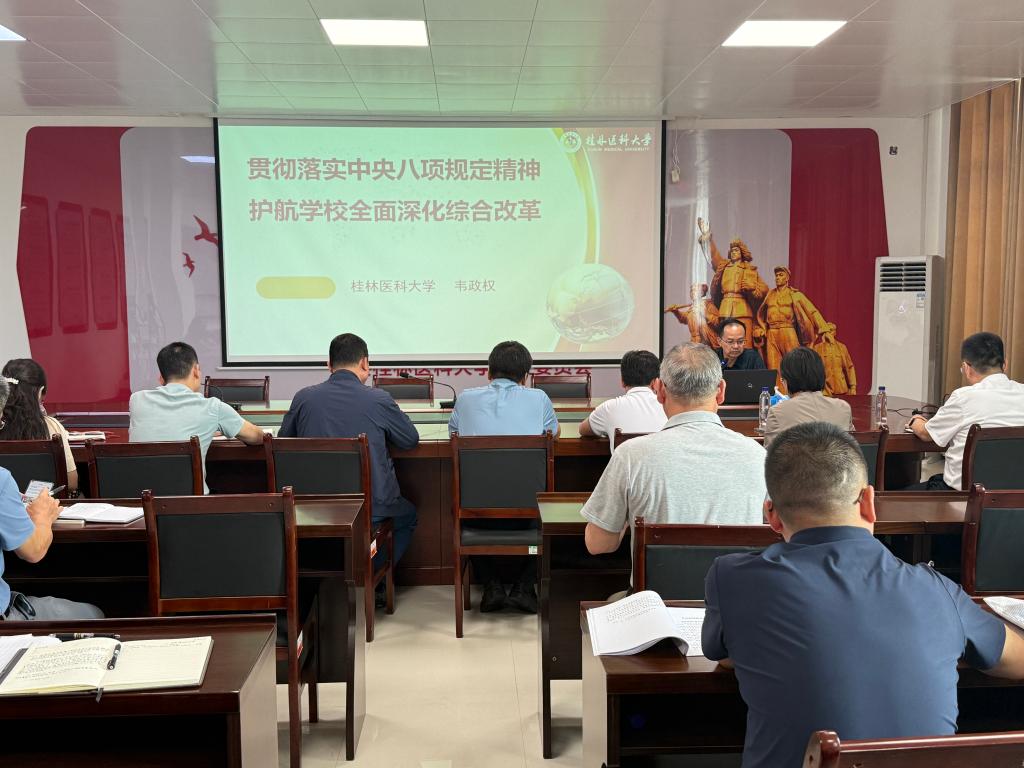 5月23日,学校纪委举办2025年第五期纪检业务沙龙,学校党委常委、纪委书记韦政权主持会议并讲授了题为“贯彻落实中央八项规定精神 护航学校全面深化综合改革”的专题党课。学校二级纪委书记,学校及直属附属医院全体专职纪检巡察干部参加会议。