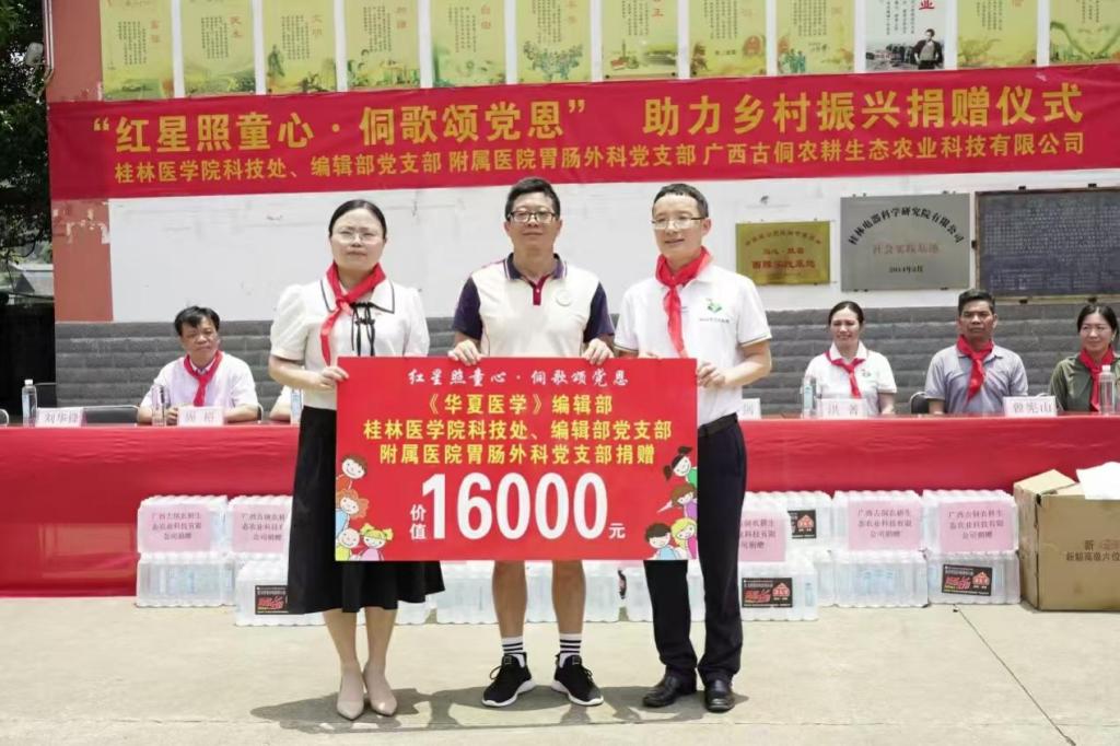 今年,在“六一”国际儿童节这个充满希望的节日里,刘华锋再次牵线搭桥,联系桂林医科大学科技处、《华夏医学》编辑部党支部以及他所在的第一附属医院胃肠外科党支部,共同到西腰村开展“红星照童心·侗歌颂党恩”助力乡村振兴主题党日活动。活动不仅为孩子们带去了节日的礼物和欢乐,更通过寓教于乐的形式,在他们心中厚植了爱党爱国爱家乡的情怀,为侗乡的未来播下了希望的种子。这些文化活动,如同春风化雨、润物无声,让西腰村焕发出文明和谐、积极向上的新气象。