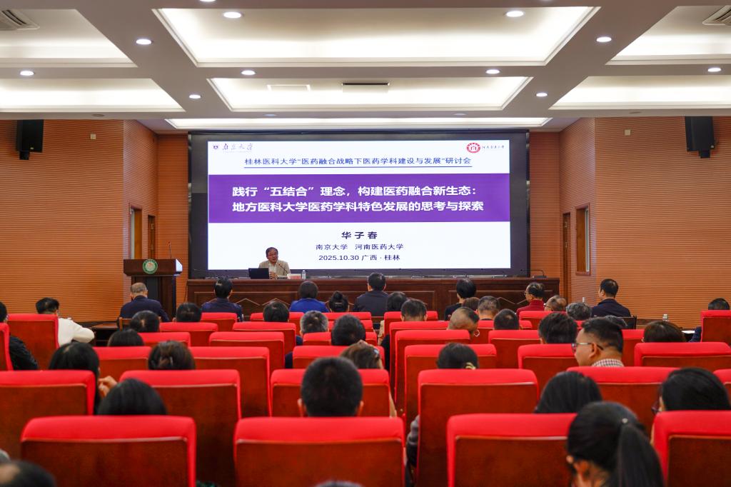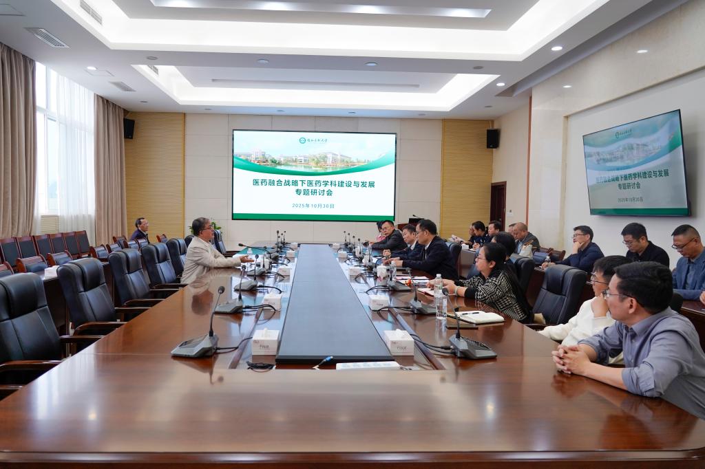 为深入贯彻落实创新驱动发展战略、推动医药学科交叉创新与高质量发展,10月30日下午,我校举办“医药融合战略下医药学科建设与发展”专家报告及研讨会。会议邀请河南医药大学学术副校长、南京大学教授华子春到校交流。学校党委书记马献力、校长曾小云等全体校领导,相关职能部门、二级学院、直属附属医院负责人及学科带头人等参加会议。会议由学校党委副书记陈旭主持。
