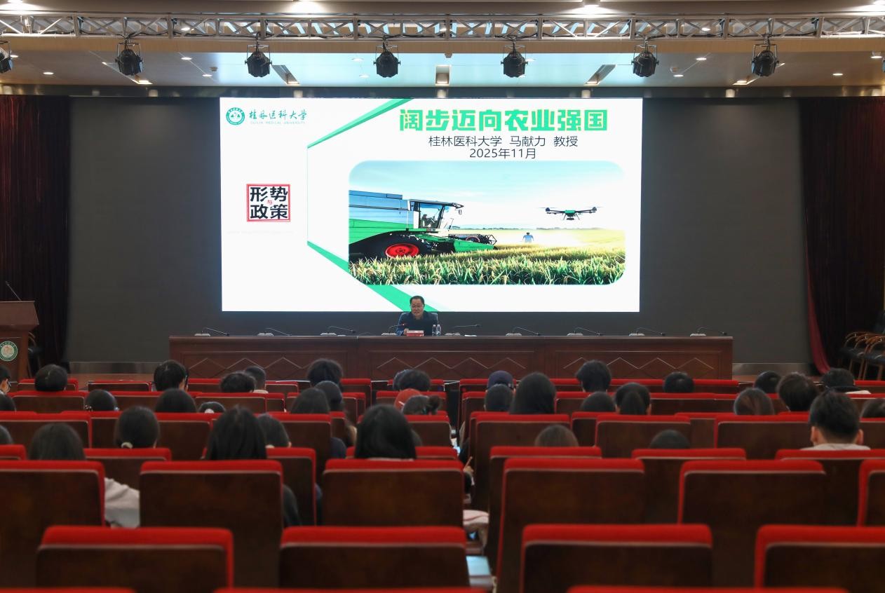 “同学们,为什么把解决好‘三农’问题作为全党工作重中之重是中国共产党一以贯之的主张和始终坚持的原则?我们医学生和农业强国建设有什么样的关系?……”11月25日上午,校党委书记马献力走进思政课课堂,以“阔步迈向农业强国”为题,为2023级生物医学工程本科班、2024级护理学本科班、2024级临床医学本科班的学生讲授“形势与政策”专题思政课。