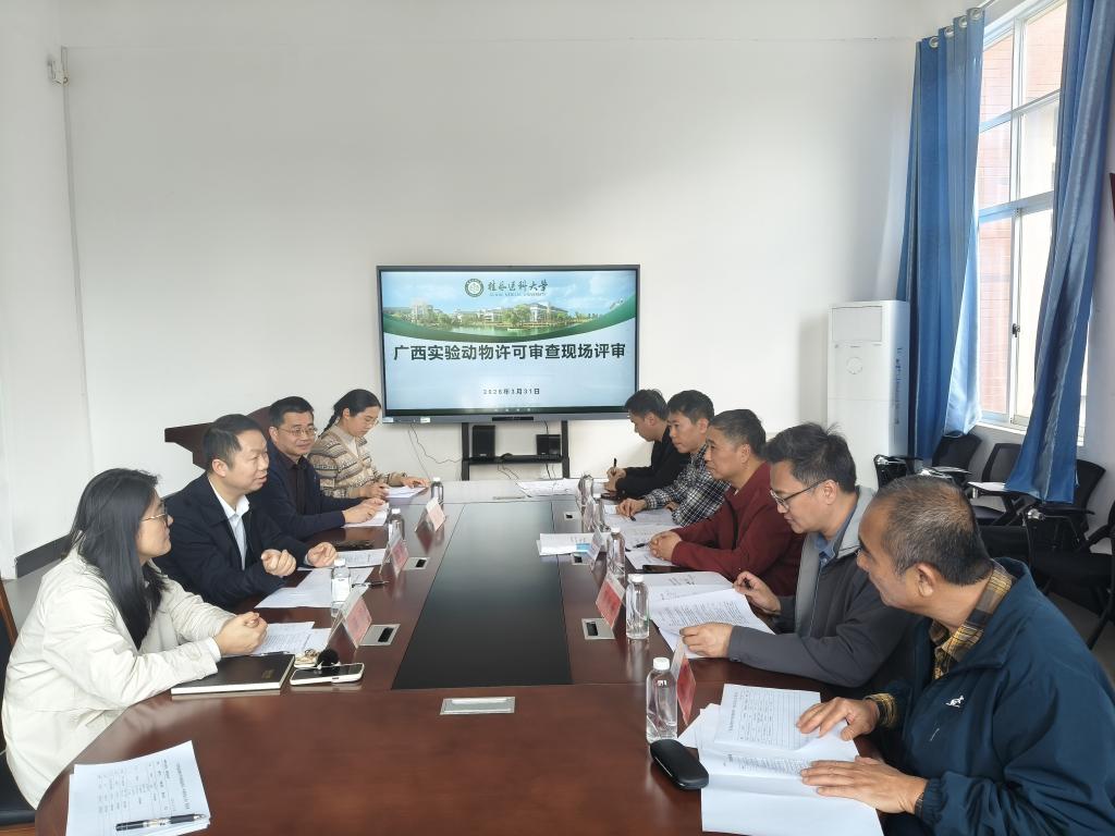 3月31日,自治区科技厅组织评审专家组对我校实验动物中心进行了《实验动物生产许可证》和《实验动物使用许可证》申请的现场评审。此次评审由广西壮族自治区职业病防治研究院李羡筠主任技师、广西大学蒋钦杨教授和广西医科大学孙俊铭正高级实验师担任专家。我校副校长陈健,科学技术研究院科研平台建设与管理处负责人及实验动物中心全体工作人员参加会议。