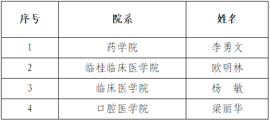 根据《桂林医学院关于进一步加强和改进大学生思想政治教育,构建“三全”育人格局的实施意见》《桂林医学院优秀大学生班级导师评选办法》,我校启动了2023年度“优秀大学生班级导师”申报评选工作。经个人申报、部门推荐,校“三全”育人工作领导小组办公室、教师工作部、纪检监察室审查,共有16名申报者符合条件。经评委评审和评选工作领导小组现场评议,拟将李勇文等4名同志评定为桂林医学院2023年度“优秀大学生班级导师”入选名单,现予以公示。公示无异议者,将报请学校审议。