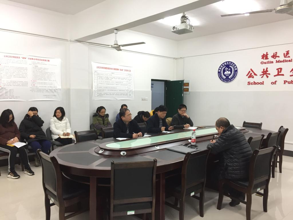 1月14日下午,公共卫生学院党委在学院会议室组织召开2018年党委民主生活会。会议由公共卫生学院原党委书记曾凡能同志主持,桂林医学院纪检监察室副主任彭鹏、公共卫生学院党政领导班子成员、党委委员出席会议,公共卫生学院党委各党支部书记、党外人士代表、各科室负责人、教师代表、学生代表列席会议。