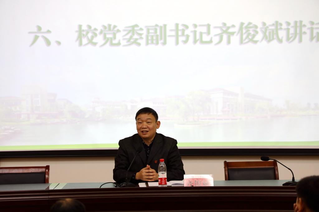 1月15日上午,我校在东城校区弘德楼一楼会议室召开2018—2019学年秋季学期期末学工干部会议。校党委副书记齐俊斌出席,学生工作部(处)、校团委、武装保卫处全体人员以及各二级学院分管学生工作领导、全体专兼职辅导员参加会议。