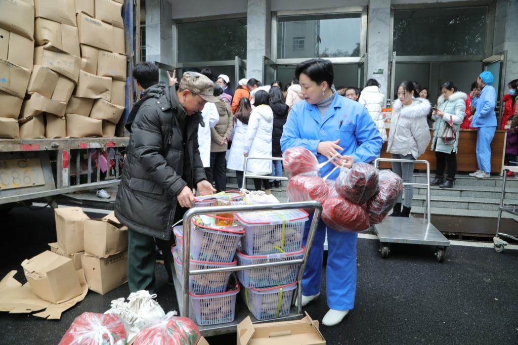 卸货物资多,时间紧,任务重!组织科科长谢芳立即在支部书记群、主任群、工会小组群招募志愿者来帮忙卸货,很快得到支部书记、主任们快速回应,一些支部书记来了、支委来了、党员来了、职工来了、学生来了……大家迅速投入到紧张有序的卸货工作中,原本需要5个小时才能卸完的货,在大家齐心协力帮助下,不到两小时就全部卸货完毕。与此同时,在微信群里,院领导、科主任、支部书记则纷纷下单:4箱、6箱、10箱、50箱、100箱、130箱……很快,1500箱椪柑就认购售罄。