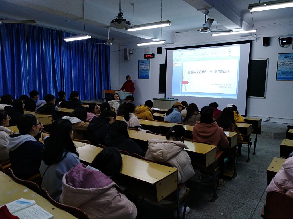 为使同学们更直观地了解艾滋病,班会以观看防艾宣传片——《生命的断层》的形式,让同学们了解艾滋病的各种传播途径和预防艾滋病的基本知识。辅导员高小玲教育同学们要珍惜生命,要培养健康的生活理念,保持健康文明的生活方式,提高自我保护意识,有效预防艾滋病,加强建设健康、文明、和谐校园的责任意识。