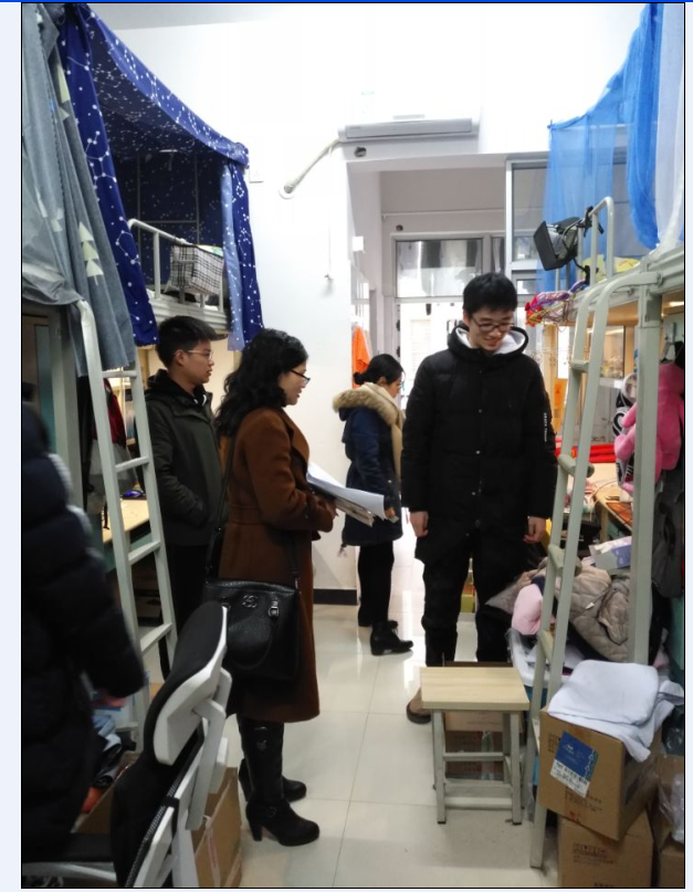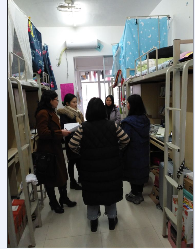 为深入贯彻落实全区学校安全工作电视电话会议和我校2019年安全稳定工作会议精神,做好公共卫生学院学生安全稳定工作。3月1日下午4点,公共卫生学院党委副书记莫丽琴率领学工办副主任喜俊霞、辅导员徐益彩开展学生宿舍安全隐患排查工作,对宿舍内硬件设施、宿舍安全防范、违规电器使用、用水用电安全、宿舍人际关系矛盾、学生夜不归宿及晚归等诸多方面进行了解和排查。