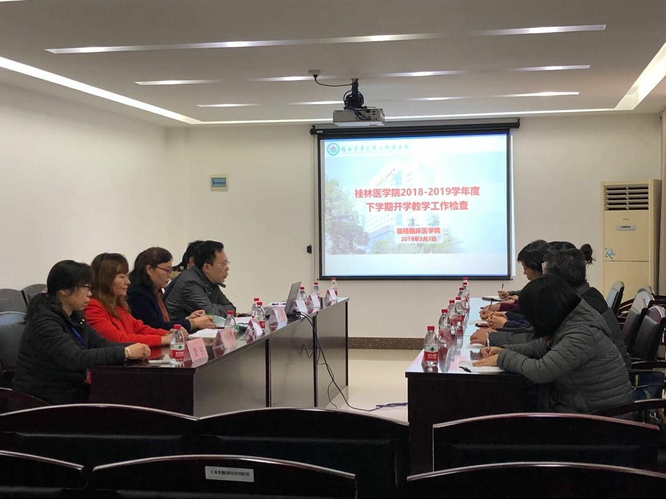 为保障新学期教学工作的平稳运行,3月7日上午,桂林医学院副院长孙莉率教务处及教师发展中心等部门人员一行7人对临桂临床医学院进行新学期教学检查。此次检查采取听取汇报和实地查看教研室两种形式,临桂临床医学院院长葛波、副院长蒋晓山以及教学管理部全体人员参加汇报会,汇报会由葛波主持。