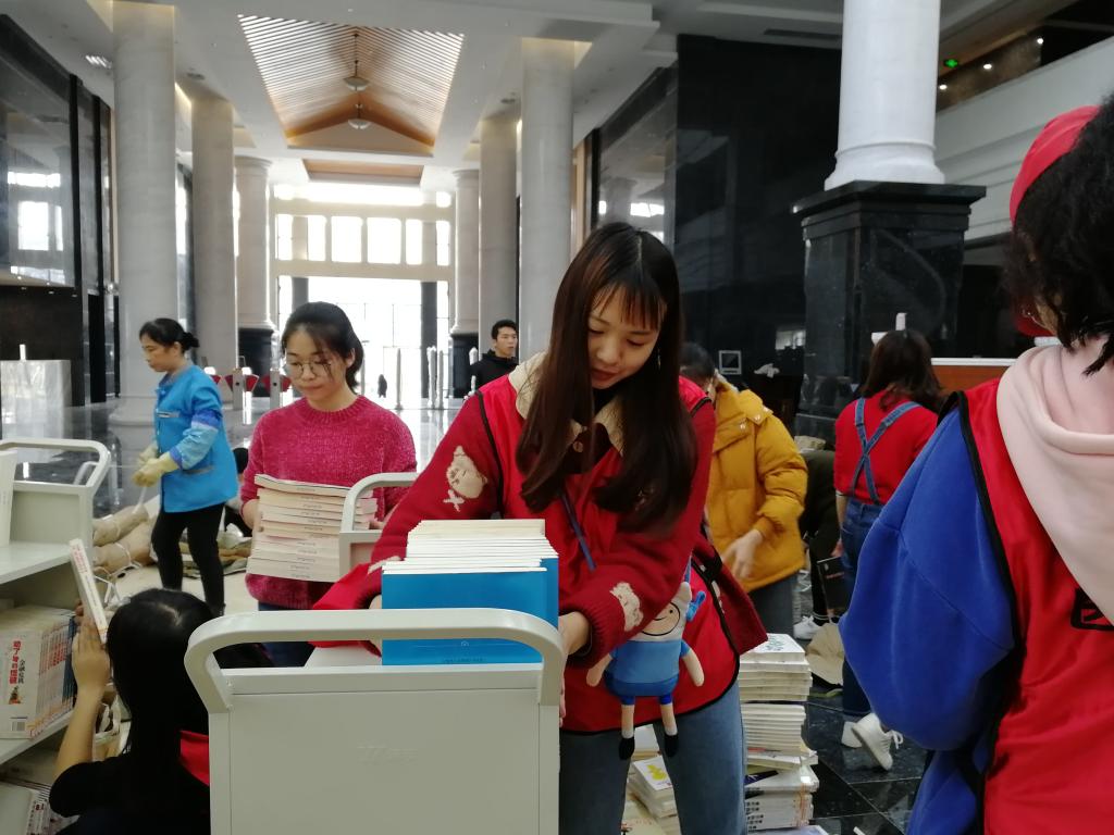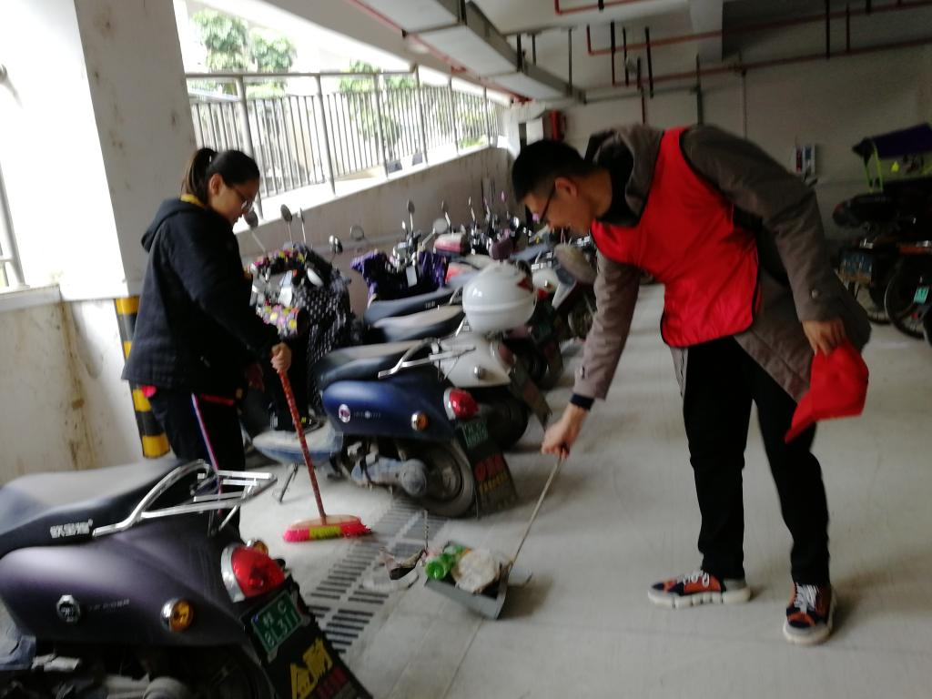 志愿者以小组为单位,在图书馆负责人以及团委负责人的指示下,明确分工,快速有序地进行图书整理、分类和上架,志愿者佩戴团徽统一着红色志愿服,在书架间行走穿梭,成为图书馆中一道靓丽的风景。在大学生活动中心地下停车场清扫工作中,志愿者对停车场进行分区域打扫,将卫生死角和墙面蜘蛛网清扫干净,为学校师生提供干净的停车环境。