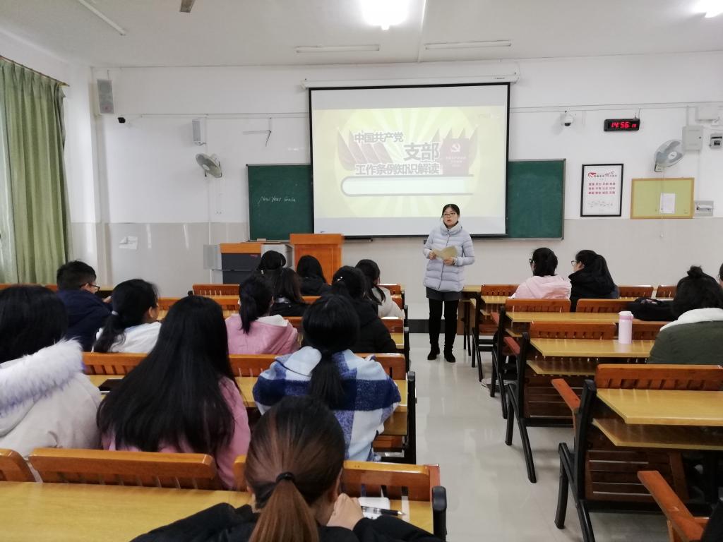 2019年3月10日下午,人文与管理学院学生第一党支部于临桂教学南楼S306召开了《中国共产党支部工作条例(试行)》专题学习会议,支部全体党员参加了学习活动。