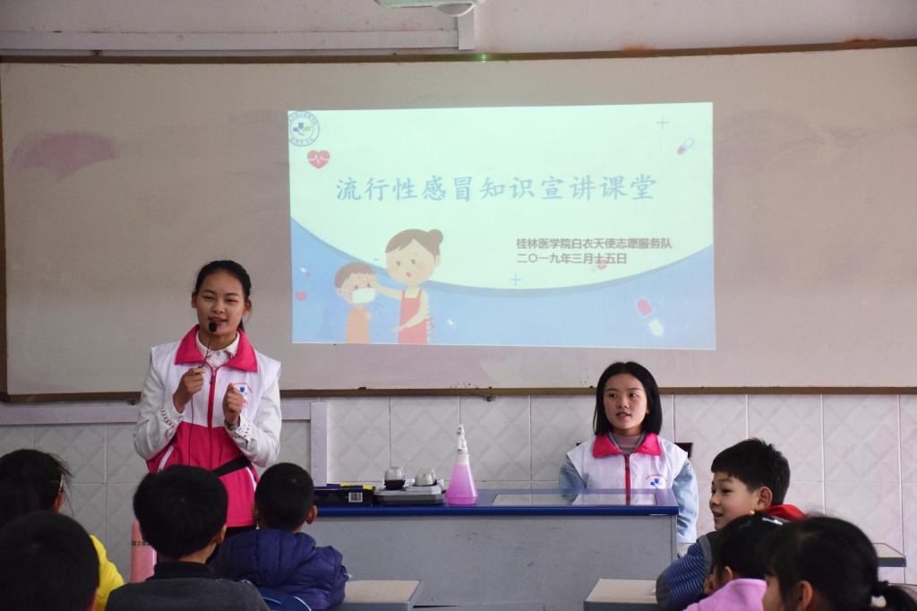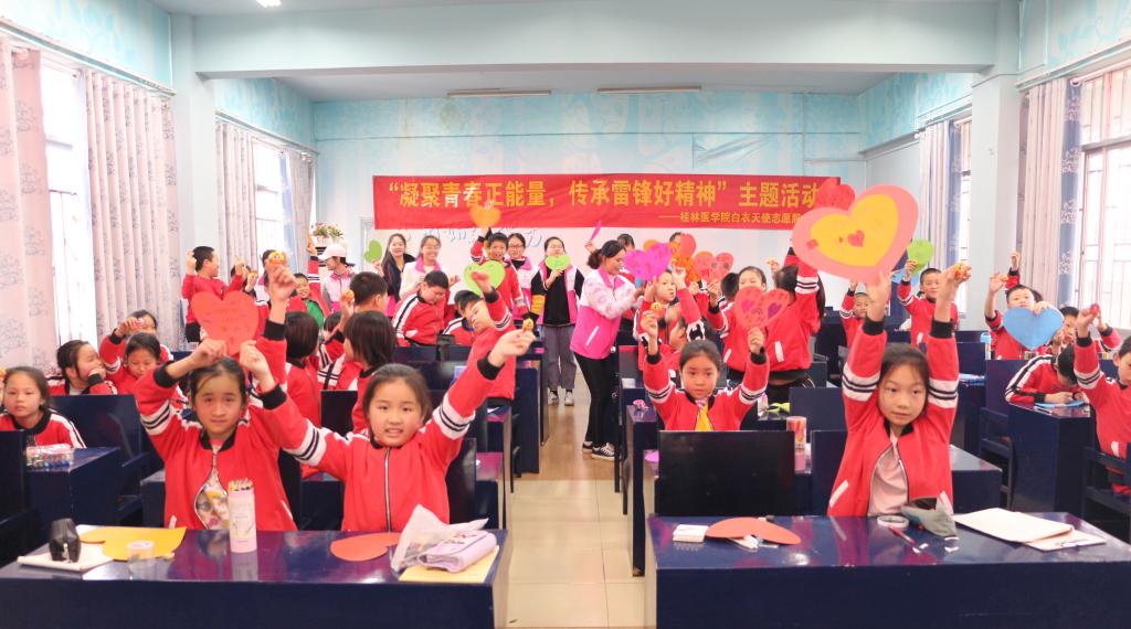 弘扬道德新风,做新时代雷锋传人,为积极响应党中央学习雷锋精神的号召,3月15日,护理学院白衣天使志愿服务队于前往桂林市七星中心校屏风、三联两大校区开展预防流感知识宣讲和“手手相传绘雷锋”趣味课堂。