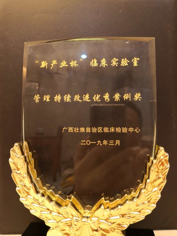 3月21日,“2019年广西医学检验质量控制学术年会暨临床实验室专业骨干培训班”在南宁举办。桂林医学院附属医院优生遗传科荣获“‘新产业杯‘临床实验室管理持续改进优秀案例奖”,同时桂林医学院附属医院优生遗传科高通量测序组组长王光丽被评为“首届广西临床实验室优秀专业组长”。