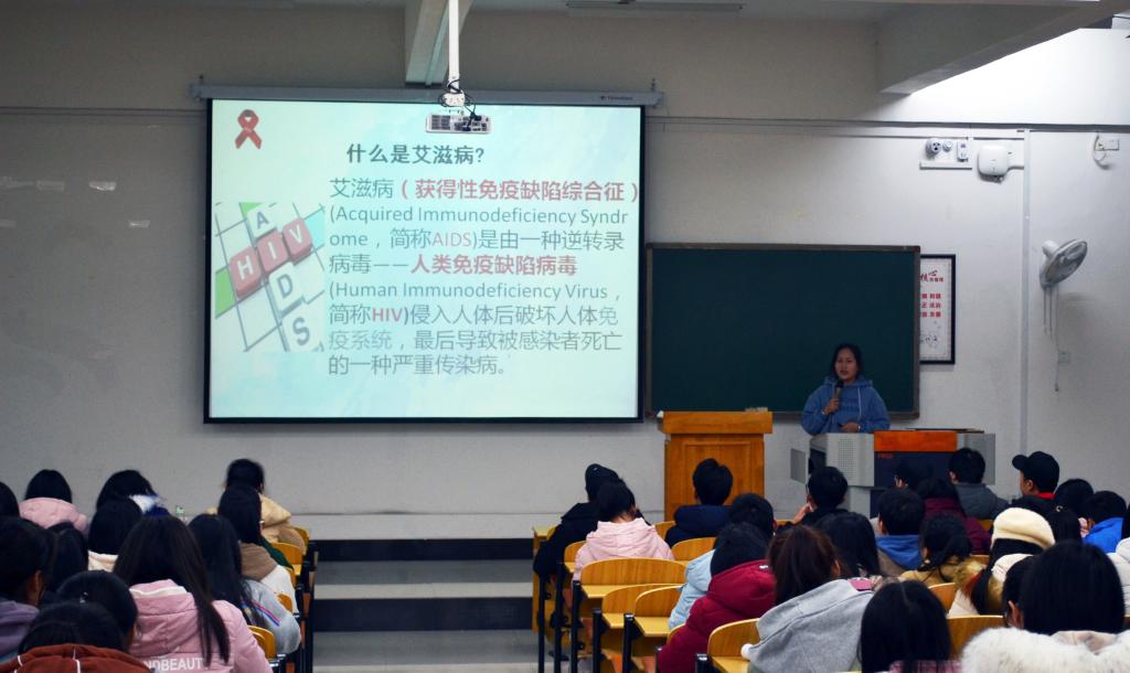为了贯彻执行广西区《广西壮族自治区防治艾滋病攻坚工程实施方案(2015-2020年)》和《2018年广西艾滋病检测咨询月宣传活动方案》的文件精神。2018年12月1日至2019年3月20日,在桂林医学院学生工作处悉心指导和大力支持下,公共卫生学院充分利用“一院一品”项目平台的资金和政策支持,在我校2018年入学本专科新生班级中,开展以“主动检测,知艾防艾,共享健康”为主题的艾滋病青年同伴教育,活动以讲座形式开展,由来自2016级和2017级预防本科班的“艾滋病青年同伴教育”成员主讲, 2018级的27个班级共2800余人参加讲座。期间,我院“艾滋病青年同伴教育”成员应邀培训桂林航天学院、桂林师范学院、桂林生命与健康职业技术学院的志愿者,并举办“防艾”知识宣传教育讲座。