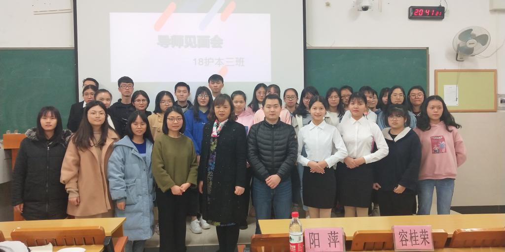 2019年3月22日晚,2018级护本三班在临桂校区举办导师、班主任见面会。导师容桂荣教授(桂林医学院附属医院绩效办)用“雨课堂”开启授课,同学用手机关注“雨课堂”,接受老师推送的视频和课件,用随机点名功能开展师生互动,让移动互联网技术为教学所用,课堂充满趣味性。导师围绕职业的分类和发展,对护理学生的职业生涯规划给出指导和意见,还为参与互动的同学颁发了礼物。同学们欣喜的接过奖品并深受鼓励。