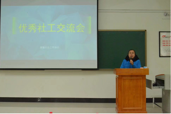 2019年3月19日是第十三个国际社工日,为进一步提高专业学生及社会对社工工作的认知、增强学生的专业认同感,2019年3月23日,人文与管理学院惠馨社会工作协会在临桂校区教学北楼104教室举行了优秀社工交流会与社工专业人才培养座谈会,本次活动得到桂林市民政局和桂林市社会工作协会的大力支持,也是桂林市社会工作主题宣传系列活动之一。本次活动荣幸邀请到桂林市福利院社工部主任刘群老师到场分享社工实务经验,参与本次活动的有人文与管理学院郭振友副院长、人文与管理学院团委林丹副书记、社会工作教研室赵阳博士、银新倩老师、陈露露老师、刘万坤老师以及全体社会工作专业学生。