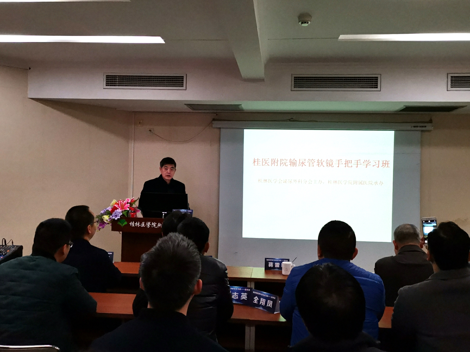 近日,由桂林医学会泌尿外科分会主办、桂林医学院附属医院承办的输尿管软镜手术手把手学习班顺利召开。桂林医学会泌尿外科分会主任委员、桂林医学院附属医院泌尿外科主任蒋雷鸣教授致开幕词,并对会议主旨进行了诠释,对今年泌尿外科分会的发展进行了规划。参加本次会议的学员有桂林市6家三甲医院泌尿外科的主任及11个县业务骨干。