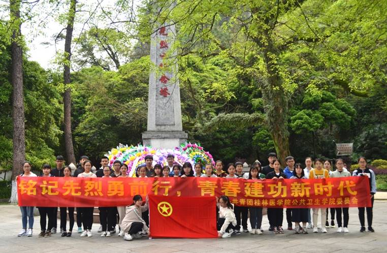 为传承革命先烈爱国传统,培养同学们爱国情怀,2019年3月30日上午,怀着对逝者的无限追忆,公共卫生学院团委、学生会、易班工作站及红丝带志愿者协会40余位同学代表前往桂林市七星区七星公园陈光烈士墓,举行“铭记先烈勇前行、青春建功新时代”为主题的缅怀先烈清明祭扫烈士墓活动。