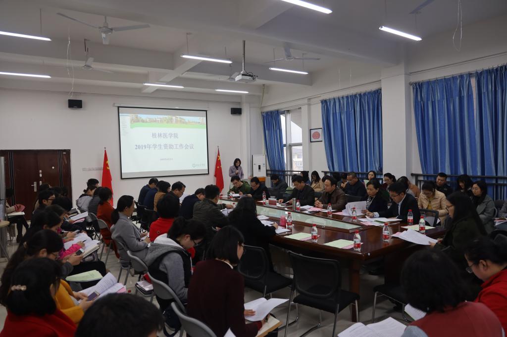 为进一步贯彻落实2019年广西学生资助工作会议精神,健全我校资助政策体系,推进精准资助和资助育人工作,4月2日下午,学工处在临桂校区大学生活动中心409室组织召开了桂林医学院2019年学生资助工作会议。校党委副书记齐俊斌、各二级学院分管学生工作领导、学生工作部(处)全体人员、全体专兼职辅导员参加了会议。