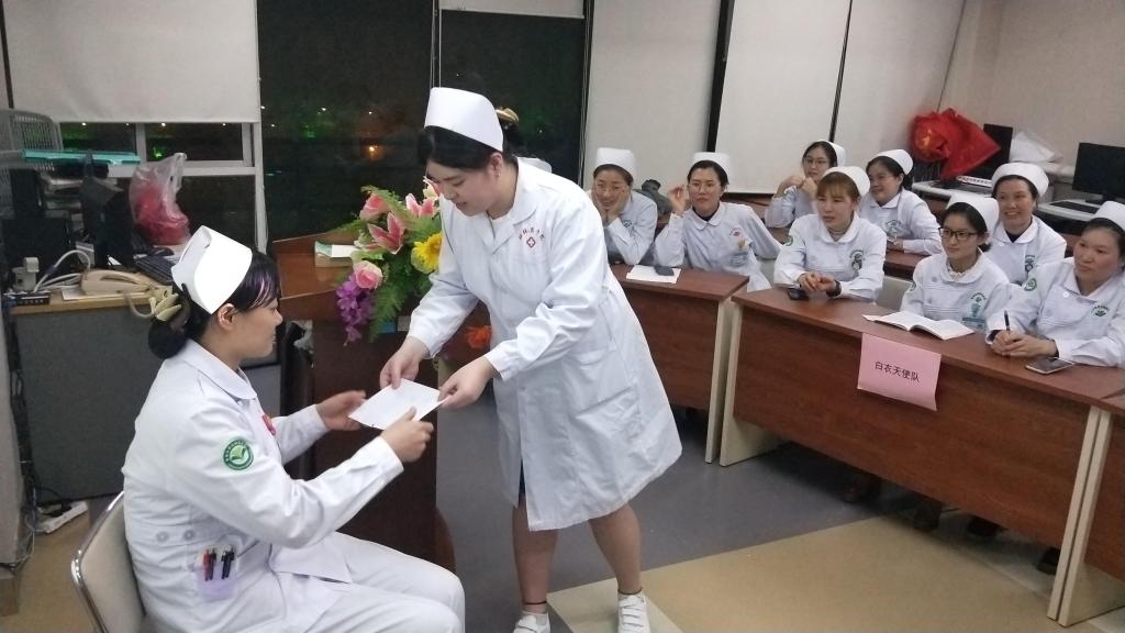 比赛在紧张而热烈的掌声中开始,按比赛要求,全科护理人员分成领跑者队、白衣天使队、啦啦队、五彩队四个小队,每个队由不同层级护理人员搭配。比赛依次进行相关理论考试、演讲、知识抢答、情景案例展示四个环节,比赛气氛活跃而热烈,各队团结协作、各显其能,赛出水平,赛出风格。
