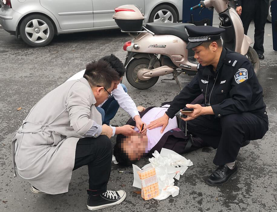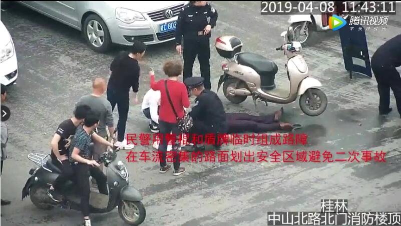4月8日上午,桂林医学院附属医院中西医结合科主任徐彤彤教授及原急诊科医生吕祥威(现在广西医科大学读博)驾车,在中山北路和翊鹉路的交叉路口等待通过时,停在他们前面的一位骑电动车男子突然倒地,过了近20秒仍未见起来,徐彤彤和吕祥威赶紧下车查看,与此同时,巡逻到此处的民警也迅速下车查看情况。
