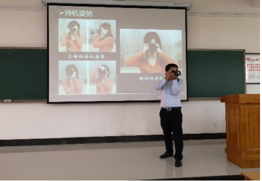 在培训中,李锦就单反相机及手机相机的结构、功能、使用方法及照片的拍摄方式为现场同学全方面展示了如何拍出构图完整、角度独特的照片等知识,同时他通过生动形象的讲解及演示将专业的摄影知识简单化、通俗化,让在场学生干部轻松掌握摄影技巧。在提问环节中,宣传人员针对日常活动摄影工作中存在的疑惑进行提问,李锦耐心为其进行讲解。活动最后,王秀娟对本次摄影培训讲座进行总结,她表示,学无止境,要以饱满的热情和积极的态度投入学院建设工作中,通过日常学习和工作锻炼,不断提升自我的能力,更好的服务学院。