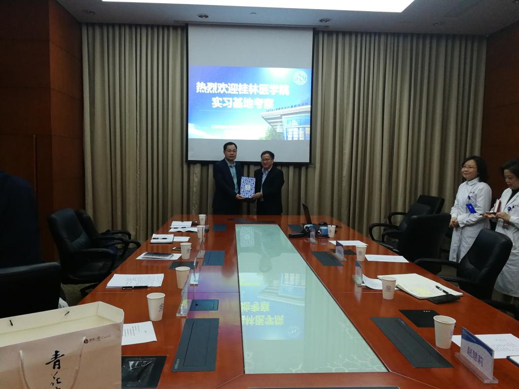交流会上,马献力部长首先介绍了此行的目的,并介绍了桂林医学院的发展历史和学校概况,表达了与新华医院建立大学生实习和就业合作的心愿。接着,徐伟平副院长对考察团一行表示热烈欢迎。与会老师们通过观看新华医院发展历程视频,深刻感受到新华医院的雄厚历史底蕴和医者仁心的大爱情怀。随后,护理部主任姜丽萍介绍了新华医院护理部的概况,包括护理人员的培训、晋升、待遇,以及护理人员紧缺状况等,表达了能从护理学院挑选到更多优秀护理人才的强烈愿望,提出能否在桂林医学院成立“新华班”的战略合作关系。最后双方领导老师就一些具体的合作细节进行了自由交流,达成了一定的共识与合作意向。马献力部长代表学院向新华医院护理部赠送了桂林医学院自主设计的梅瓶,双方一起合影留念。