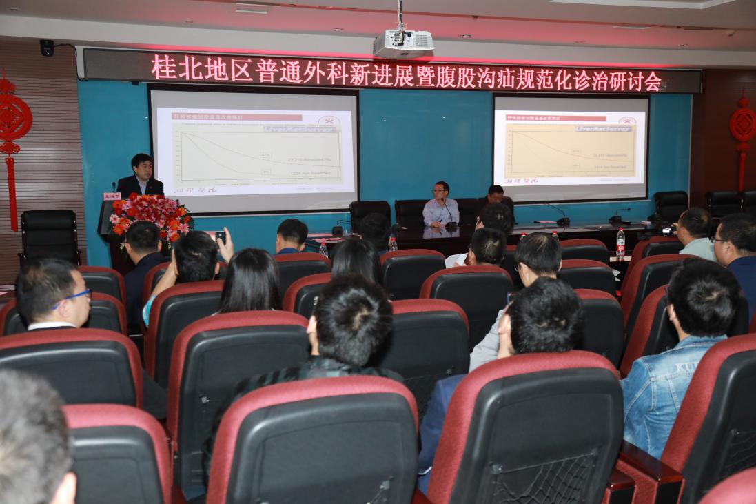 2019年4月19至20日,由桂林医学会、桂林医学院附属医院胃肠外科主办的2019年桂北地区普通外科新进展暨腹股沟疝规范化诊治研讨班在桂林医学院附属医院综合楼举办。本次研讨会围绕胃普通外科的新理论新进展以及腹股沟疝规范化治疗的热点问题进行探讨。会议邀请了多位区内外的著名专家,与近150名桂北地区临床一线的普外科同仁们共同讨论、分享和交流。