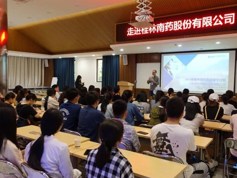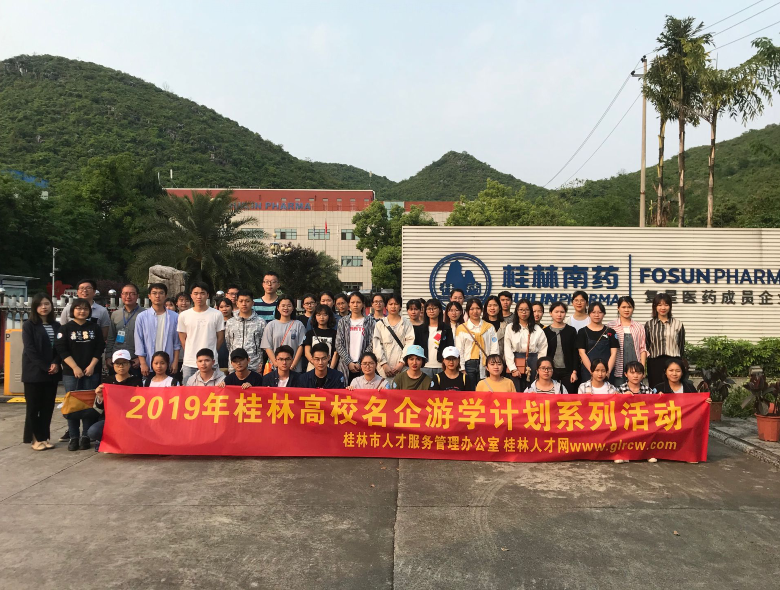 为帮助高校大学生了解桂林市优质企业,为学生提供就业机会,2019年4月22日下午,桂林医学院药学院54名学生参加了由桂林市人才服务管理办公室举办的2019年第一期桂林市高校大学生优质企业游学活动之走进桂林南药股份有限公司。