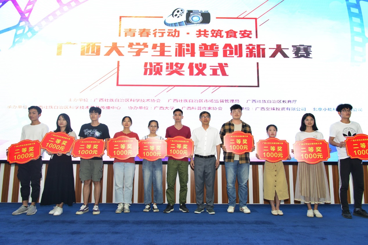 2019年4月19日,由自治区科协、自治区市场监督管理局、自治区教育厅联合主办的“青春行动·共筑食安”广西大学生科普创新大赛颁奖仪式在广西大学举行,公共卫生学院辅导员张国栋老师带领2016级预防医学本科班、2016级食品卫生与营养学本科班、2017级食品卫生与营养学本科班的获奖同学参加颁奖仪式。