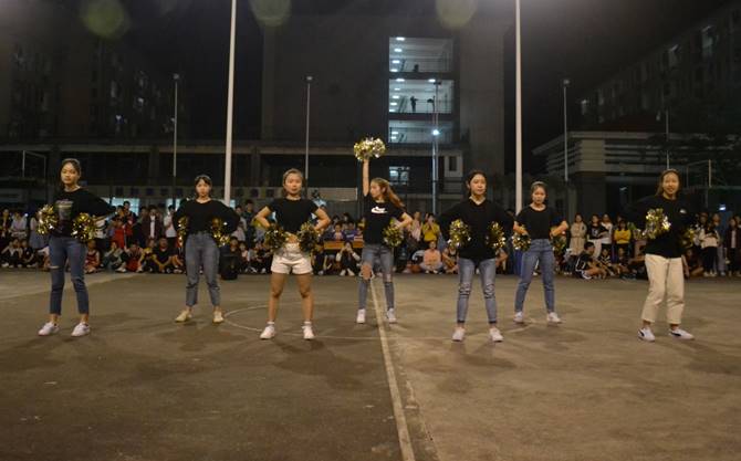 球场上比拼激烈,观众们热血澎湃,此起彼伏的叫好声,呐喊声响彻这个灯光球场。而在中场休息时,YY啦舞社带来的充满活力与激情的拉拉舞更让在场的每一位成员耳目一新。