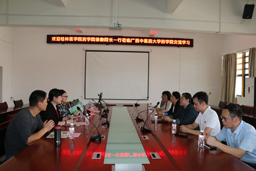 在广西医科大学药学院考察交流期间,受到了药学院党委书记文秋林及相关科室负责人的热情款待,双方相互介绍本学院的基本情况,就学科建设、研究生教育等情况进行深入的交流。随后,徐勤院长一行参观了药学院公共实验平台和中药标本馆,双方就公共实验平台建设、中药标本馆建设等进行深入交流。