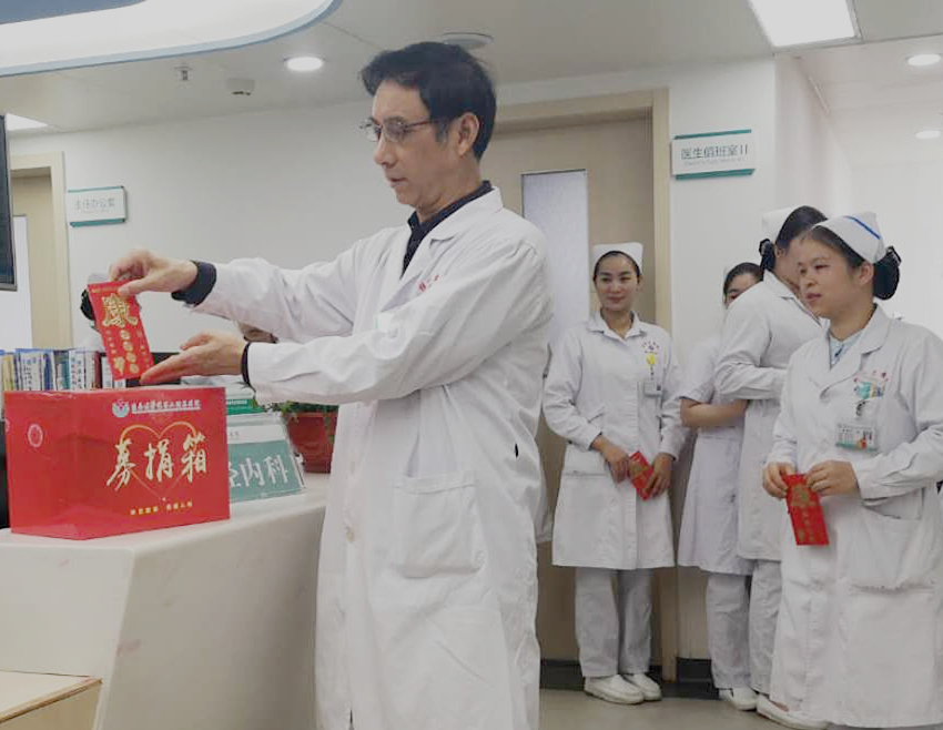“我们作为医务工作者,不仅要有责任心,更要有爱心和担当。我们对她十分同情,希望能帮帮她,帮她渡过难关。”桂林医学院第二附属医院神经内科相关负责人表示,在小王入院期间,除了对小王进行积极的治疗和细致的护理外,科室的医护人员们还自发为其进行了捐款,以减轻小王一家的经济压力。4月26日上午,神经内科的医护人员们将一笔笔带着温度的善款捐入募捐箱,送到小王手上时,小王感动得眼泪婆娑。