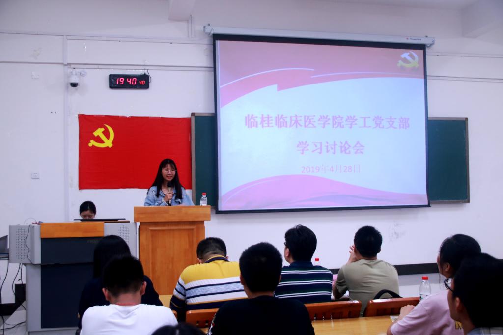 为进一步加强大学生政治思想教育,积极引导广大学生党员增强党员意识、履行党员义务,贯彻实施新时代党的组织路线,提升我院党员政治素养,加强党的建设,临桂临床医学院学工党支部于4月28日在教学北楼N107开展学习谈论会,临桂临床医学院学工党支部书记潘涛、陈辰、张健铭、庞玉琦作为嘉宾出席本次活动,学工党支部党员及入党积极分子参加此次活动。
