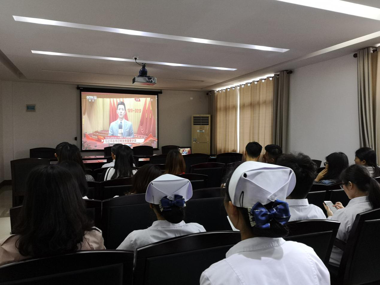 2019年4月30日上午10时30分,纪念五四运动100周年大会在人民大会堂举行,中共中央总书记、国家主席、中央军委主席习近平出席大会发表重要讲话。桂林医学院第二附属医院团委组织全院各团员干部集中观看了直播,医院党委副书记、纪委书记王群参加。
