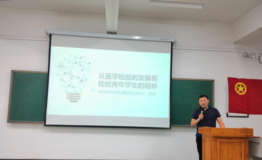 本次交流会在共青团团歌的歌声中拉开帷幕,以“从医学检验的发展看检验青年学生的培养”为主题。第一部分,杨峻通过漫画的形式映射当代大学生的生活变化,并详细介绍医学检验技术的过去与未来,以此告诫同学们应当尽早规划人生,明确目标、砥砺前行;第二部分从“三个挑战,一个展望”分析医学检验技术所面临的大环境,使同学们对医疗环境的新形势有崭新的了解,提高了同学们对检验专业的认知;第三部分讲述了青年检验学生在新形势下应当具备的关键能力,同时鼓励同学们坚定目标,积极参加创新实验与科研工作,践行实验出真理,全面激发自身潜力。