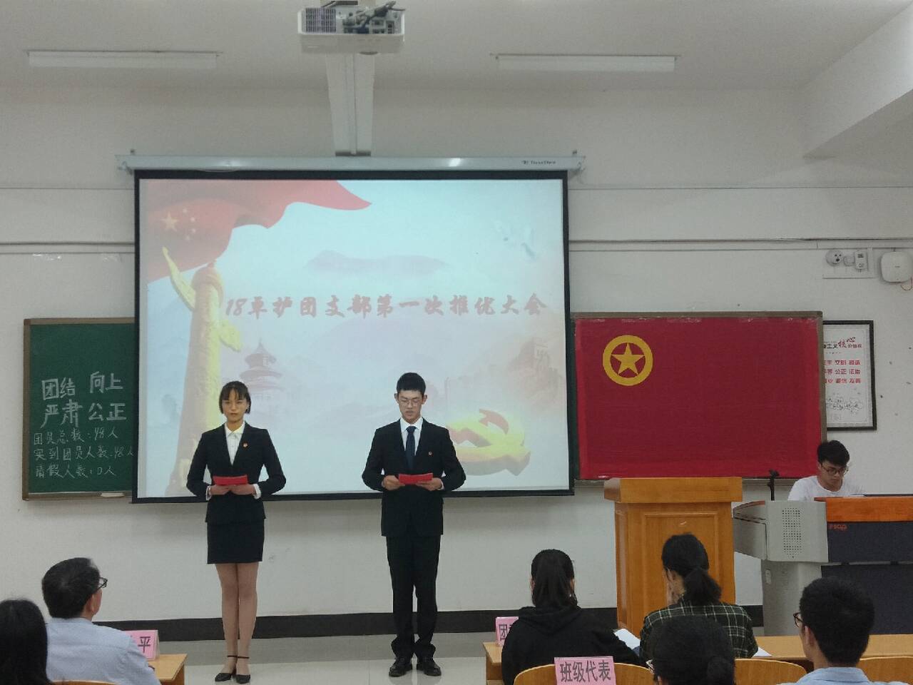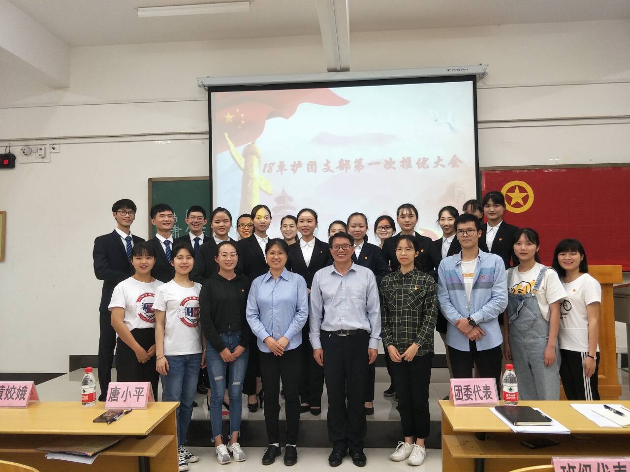 推荐优秀团员作党的发展对象,是培养和造就社会主义事业接班人,充实党的新生力量,加强党的队伍建设的需要,也是加强对广大团员思想政治教育的重要途径,4月29日下午,18卓越护师班在临桂校区N102教室举行了第一次推优活动。辅导员唐小平老师,班主任黄娇娥老师、团委、班级代表及18卓护班全体同学参加了大会。