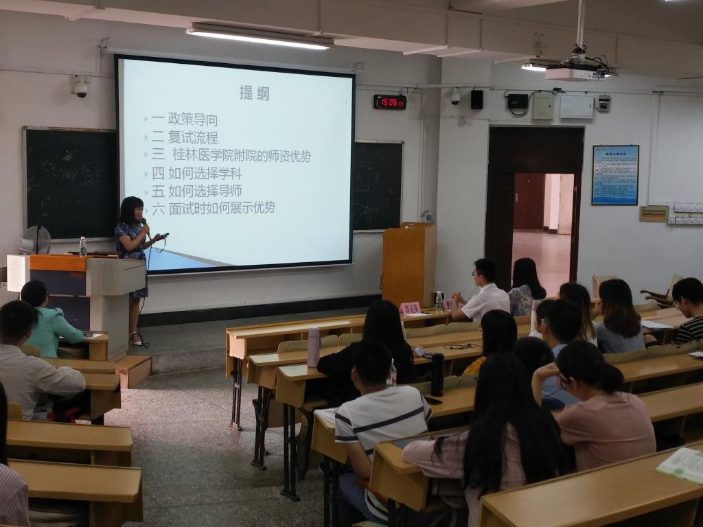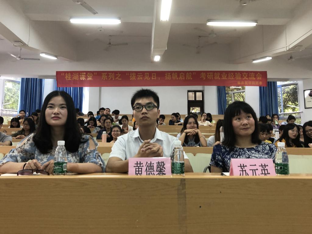 为帮助同学们看清就业形势,解答考研、签约、规培疑惑,端正心态,更好地规划自己的未来,4月25日下午临床医学院在东城校区T1-2教室举办“桂湖课堂”系列之“拨云见日,扬帆启航”考研就业经验交流会。临床医学院研究生科苏元英老师,2014级临床医学本科一班易军方、本科二班黄德馨,2015级临床医学本科班辅导员及100余名学生参加了本次交流会。