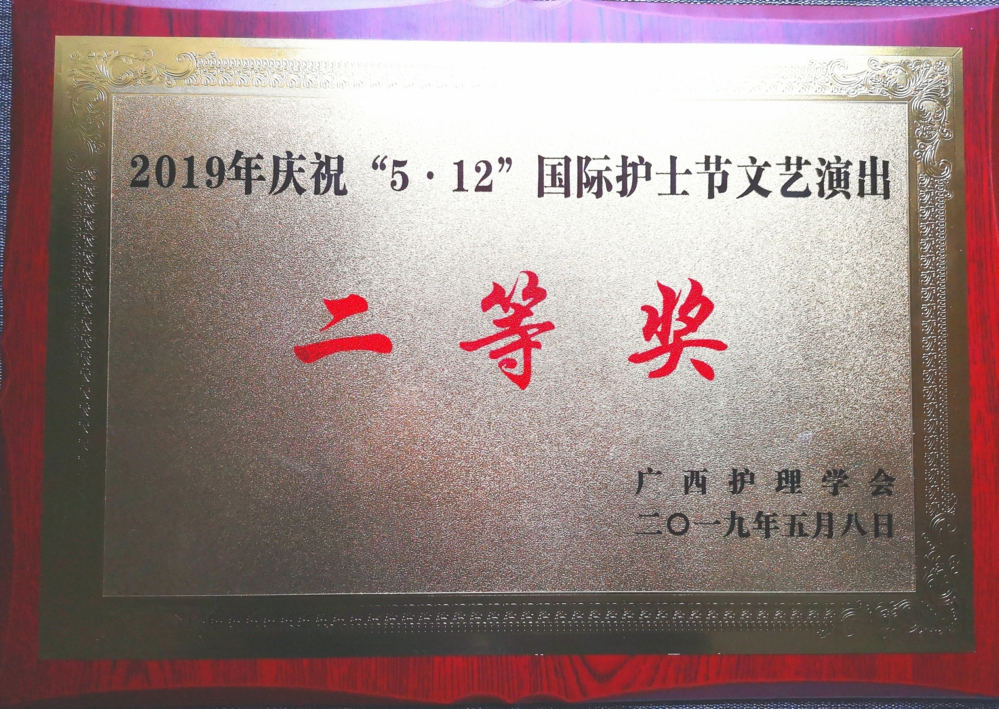 当晚,文艺演出汇聚了来自全区各大医院及各市护理协会选送的18个优秀演出节目,经过专家评委打分,桂林医学院附属医院选送的《传承·银杏树下的大爱》最终脱颖而出,以9.58的高分获全区2019年庆祝‘5.12’国际护士节文艺演出比赛第二名,获颁发二等奖。