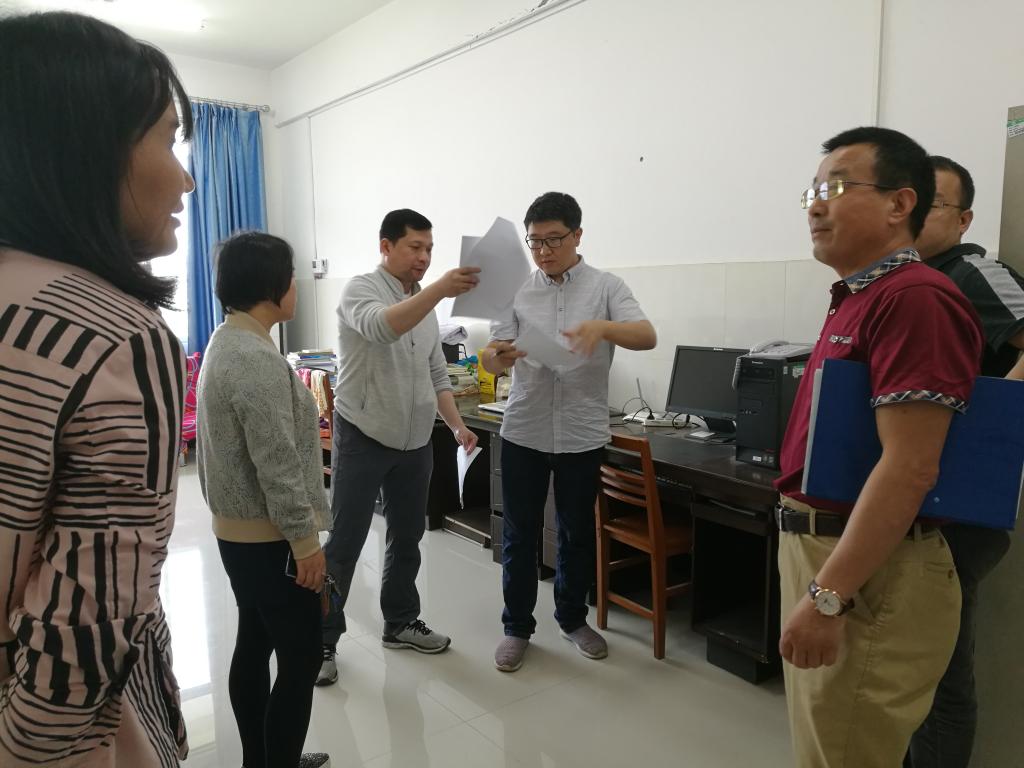 基础医学院主管教学的谭宁副书记带领教学管理科成员、各教研室主任,严格按照学校期中教学检查登记表上的内容,对各个教研室进行检查并做好记录。