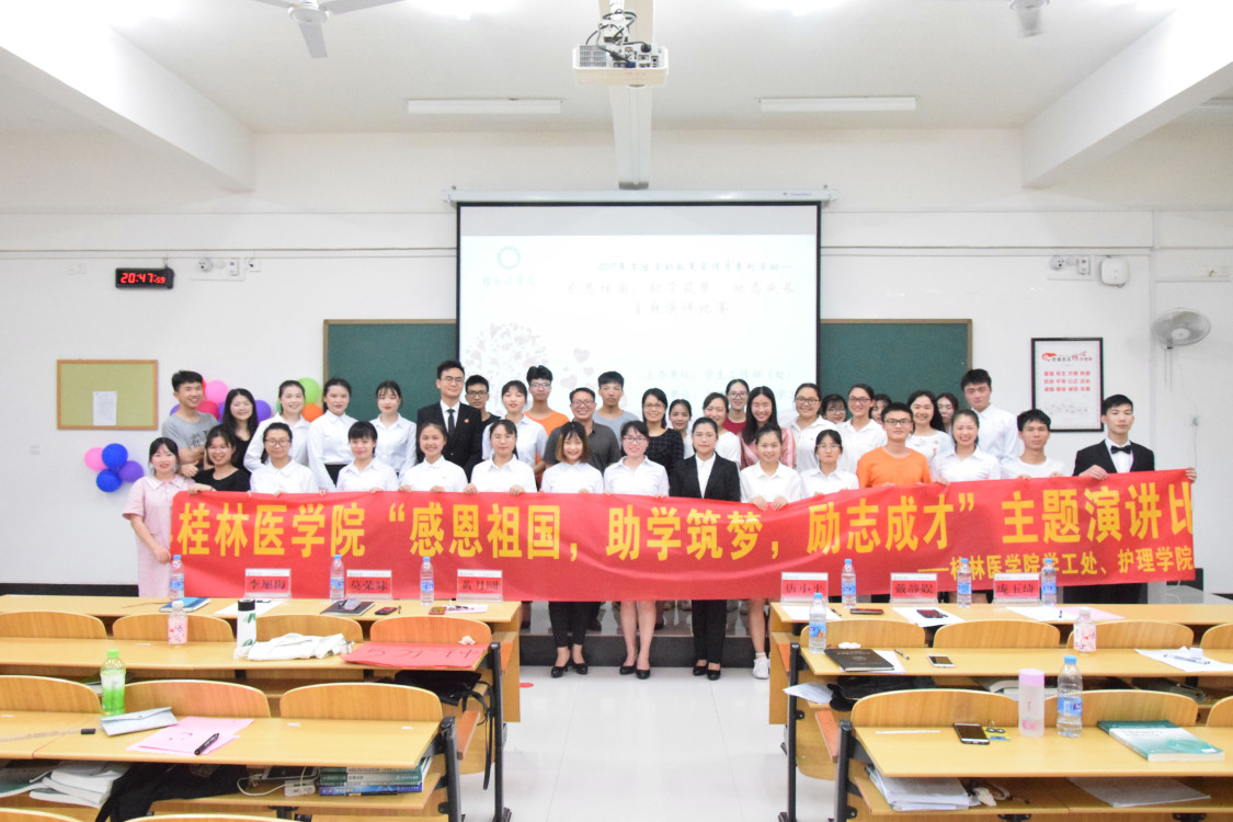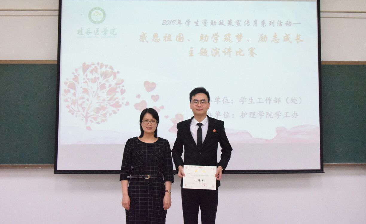 为进一步加大学生资助政策宣传力度,展现家庭经济困难学生在国家资助政策的支持下,积极进取、奋发学习、自立自强、诚信感恩的精神面貌,5月15日晚,我校在临桂校区北楼304举办2019年“感恩祖国,助学筑梦,励志成长”主题演讲比赛。学生工作部(处)黄月圆副部(处)长、护理学院党委唐小平副书记与资助中心、各二级学院学工办老师及200余名学生代表共同观看本次比赛。