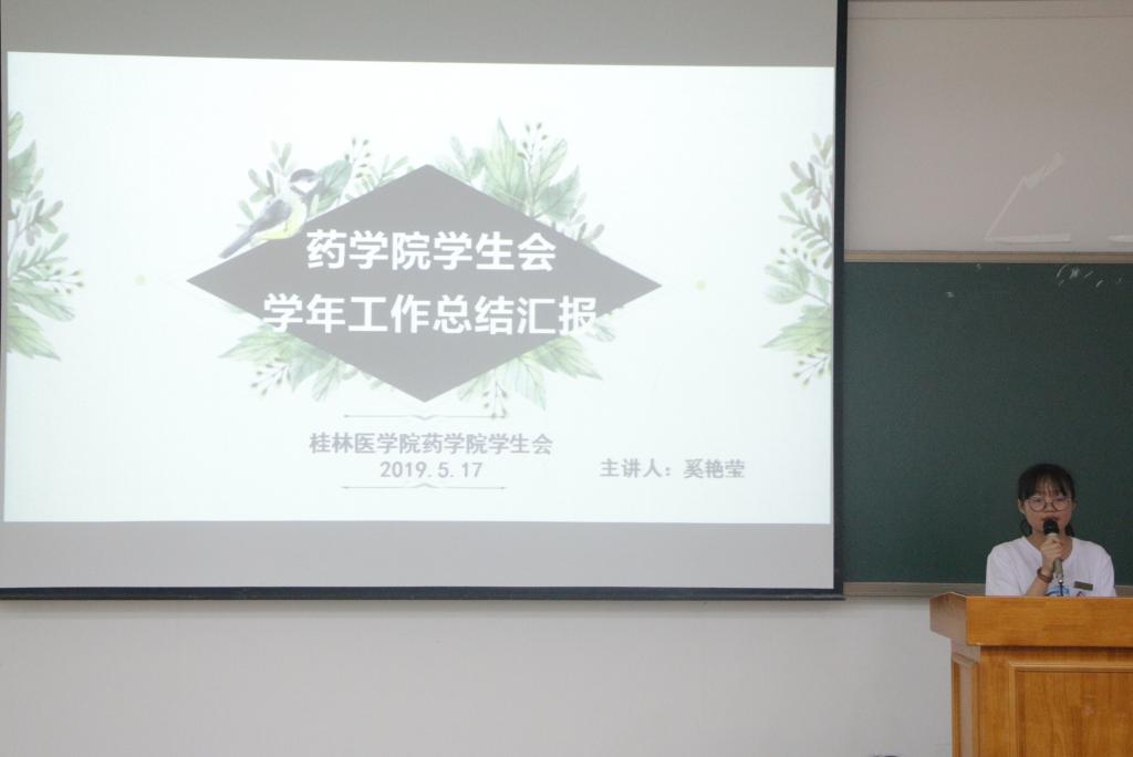 会上,药学院“红色阵营”、药学院学生会及药学院团委分别对一学年来的工作作出总结汇报,各组织以精美简洁的PPT和异彩纷呈的视频形式,分别就回顾过去、经验总结及未来展望三个方面进行了细致入微的讲解,展示出各组织的工作剪影与成果收获。药学院团委书记于静娴对本次大会作出总结,她充分肯定了一学年来各组织的辛勤付出与工作成效,希望各组织继续努力,共同为药学院的发展贡献出自己的力量,她还指出各组织存在的不足之处,并一一给予建议,勉励学干们在今后的工作中更加努力,再创佳绩。