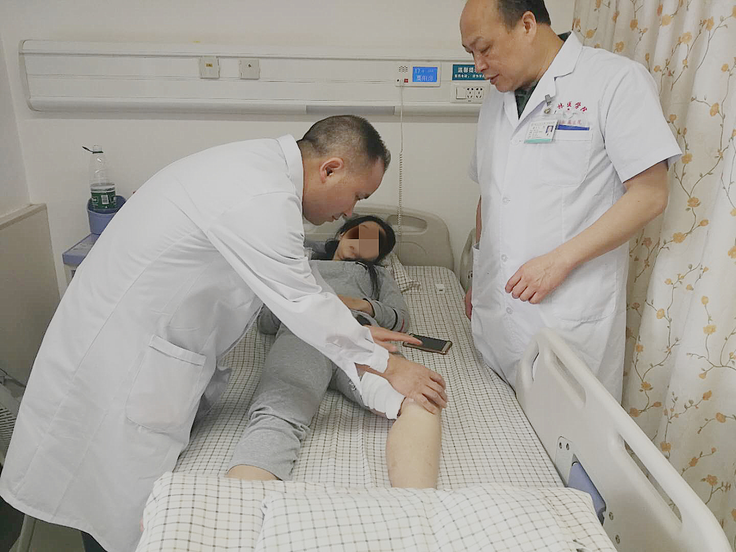 在多方打听后,今年4月,小宋来到桂林医学院第二附属医院心胸血管外科就诊。在详细了解了小宋的情况后,心胸血管外科孙玉桂副主任医师决定对其予以“量体裁衣、定身制作”,“一站式”解决肿块,一期完成所有手术。“这个切除手术难度比较大,因为腿部周围的血管、神经都比较丰富,且考虑到患者家中较为贫困,血管介入手术费用较大,经科内商讨,我们决定为她进行一期左下肢肿块切除手术治疗。”孙主任说道。“手术的关键是避免手术当中大出血,分离时确保不造成股、动静脉及神经损伤,为此我们做了大量的术前准备和包括术前大量备血,术中使用血液回收机等多套应急方案以备不时之需,并注意保证分离血管时一定要小心仔细;术中应用止血带,必要时先分离套带阻断股总动脉等。”孙主任表示。在小宋入院期间,除了对她进行积极的治疗和细致的护理外,心胸血管外科室的医护人员们还自发为其进行了捐款,以减轻小王一家的经济压力。“我们都很同情这个年轻的小姑娘,我们了解到,因为费用问题,她多次考虑过放弃治疗,我们希望用自己的一点点微薄之力为她减轻些经济压力吧。”护士长卢珊说到。