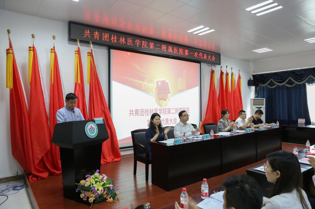 微风徐徐,二附院青年团员迎来了属于自己的代表大会,桂林医学院第二附属医院院党委书记宋剑非、共青团桂林市委员会副书记滕亚、共青团桂林医学院委员会书记龙亮、医院党委副书记刘梦青、共青团桂林医学院附属医院委员会书记王彦妮、共青团临桂区委员会副书记赵泉出席本次大会。
