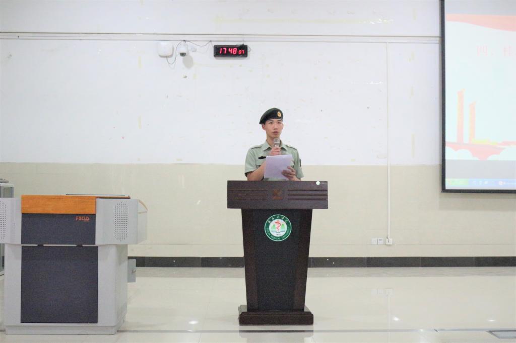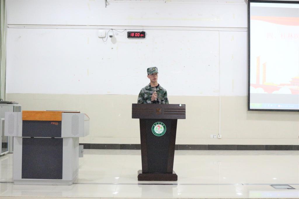 2019年5月21日下午5:30在临桂校区教学南楼多功能报告厅药学院举行2019年征兵宣传工作动员报告会,药学院徐勤院长、学校武装部、保卫处冯天谨处长、药学院党委谭钦刚副书记和优秀退役大学生代表陈名辉、李泳霖、黄东华同学受邀出席此次活动,药学院全体辅导员及432名男生参会,会议由学工办主任蒋艳平老师主持。