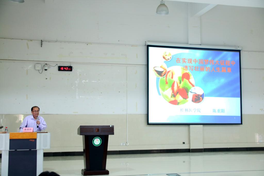 为进一步改进和加强大学生思想教育活动,5月22日下午在临桂校区南楼多功能报告厅举办“实现中国梦伟大征程中谱写壮丽的人生篇章”专题讲座,特邀桂林医学院原党委常委、副院长陈重阳教授主讲本次活动,离退处党委书记马春涛、学工处副处长黄月圆及临桂临床医学院、康复医学院师生代表到场聆听。