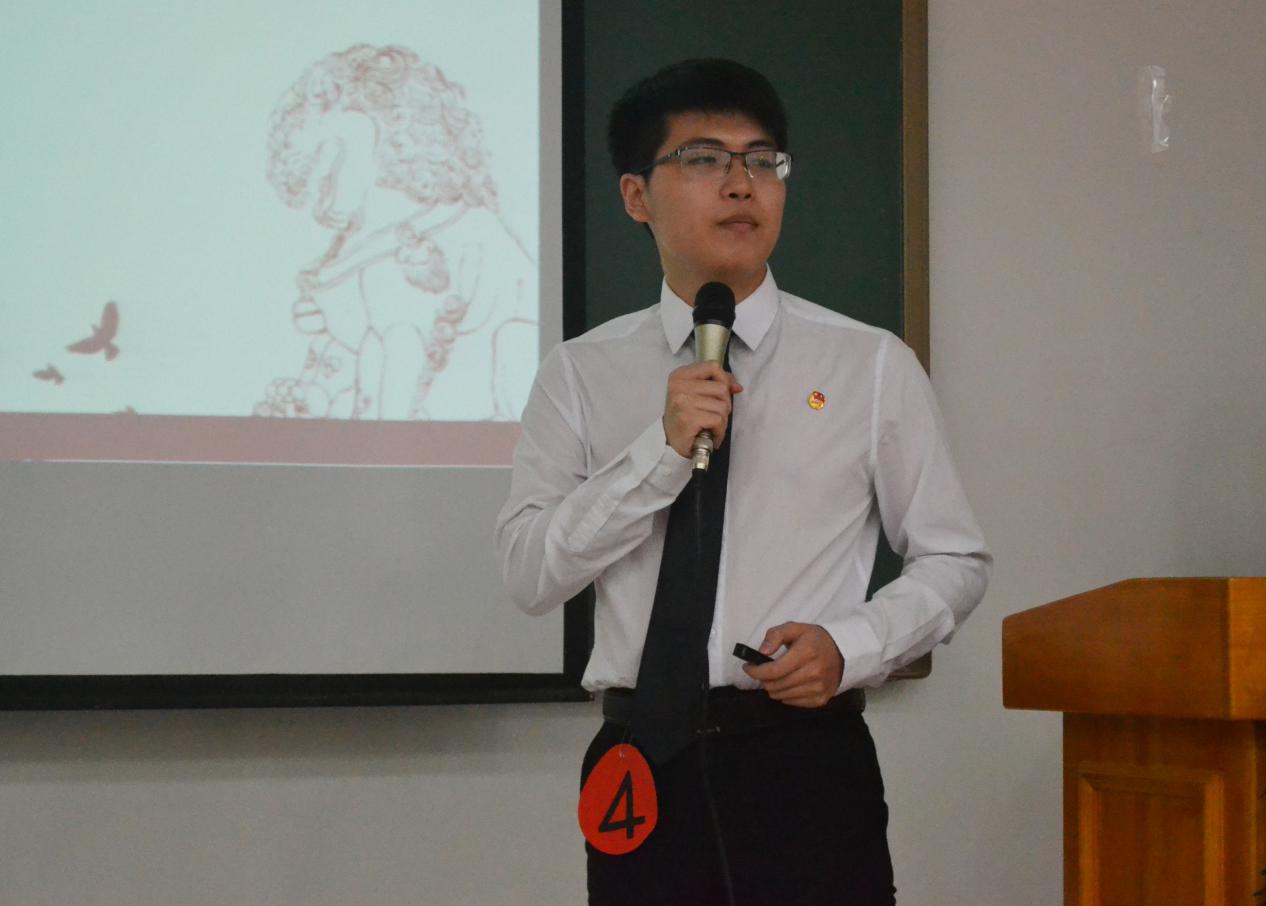 随着主持人介绍到场嘉宾,评比正式开始。首先进行第一项:奏唱团歌。嘹亮的歌声,坚定的面容,展现了团员的青春风貌和满腔热血。激情团歌结束后,团委书记张国栋老师为本次评比致辞。他强调好的团支部应当重视理论学习及其活动实践,将党的方针政策融入生活,重视团日活动。他希望各团支部从活动中互相学习,建设更好的团支部,增强班级凝聚力;勉励青年团员提高思想认识,积极向党看齐。