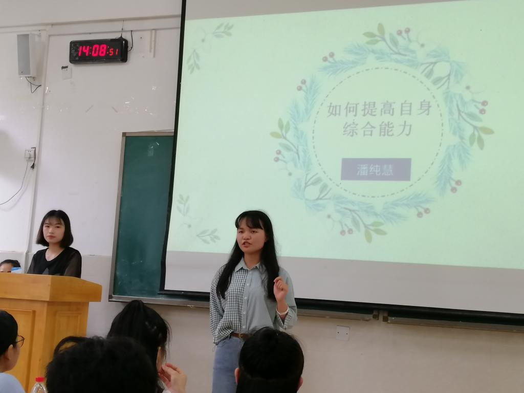 、如何选择和开展大创课题、大创的数据统计和大创论文投稿及如何学会学习等方面进行了较为全面的经验分享。学姐都一致指出:大学是每个学子的平台,机会、时间对每个人都是公平的,一定把握住机会努力去培养自己的一门特长,加强内在素质与外在形象兼修,自己想做的事情不要说没准备好,只有去做了才知道行不行。