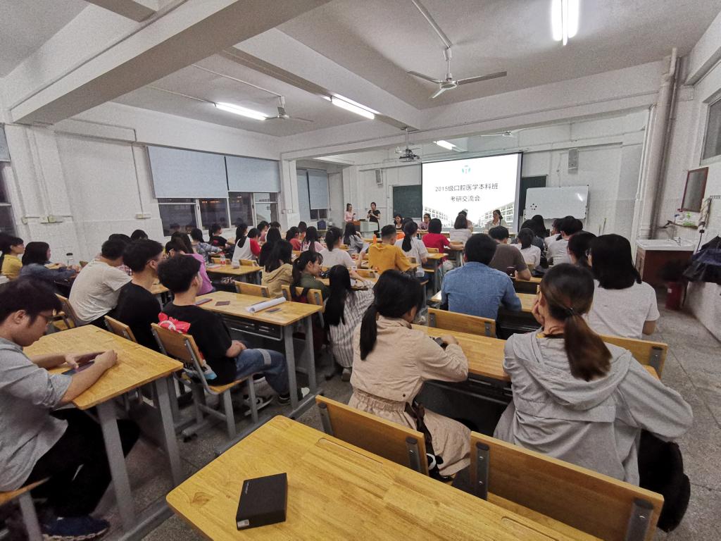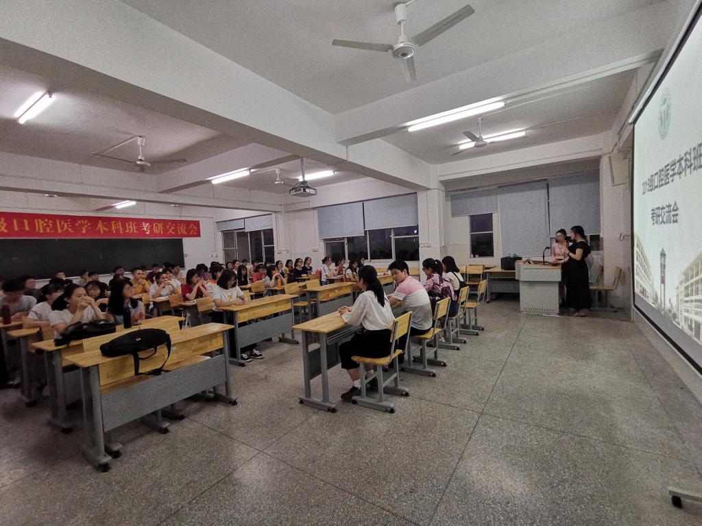 5月29日晚,口腔医学院2015级口腔医学本科班考研交流会在东城校区科教楼305教室举行,口腔医学院梁丽华、杜双全两位老师及邓健文、彭薇两位2014级考研成功的同学参加了交流会。