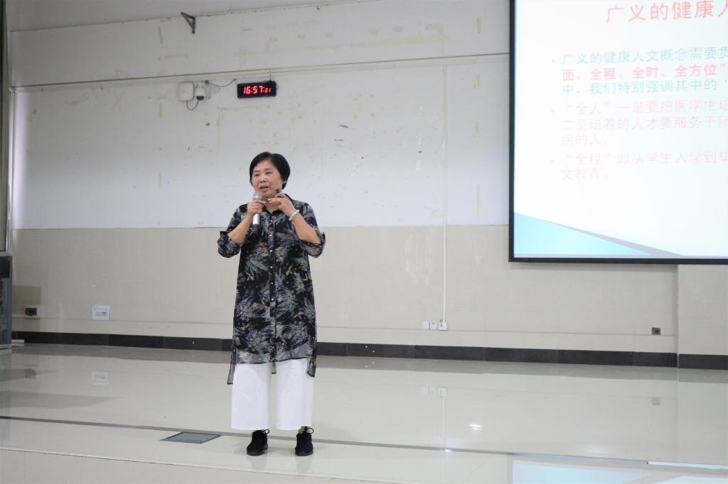 沈雪松教授以大健康背景下的医学、人文医学-医学人文-医学人文关怀、人文医学教育为主要内容进行讲述。她以问题为导向,引入经典案例,并结合时事政策,呼吁广大医学生重视人文素质与人文关怀,促进学校“三全育人”体系的构建。沈教授的精彩讲座,让同学们明白在未来的医学道路上,提高人文素质,将人文关怀与医疗技术相融合是必然趋势。讲座的尾声,马春涛书记进行了总结发言。马春涛书记带领同学们回顾了沈雪松教授讲述的内容,表达了对桂医学子成人成才的殷切希望,激励同学们在医学的道路上砥砺前行。